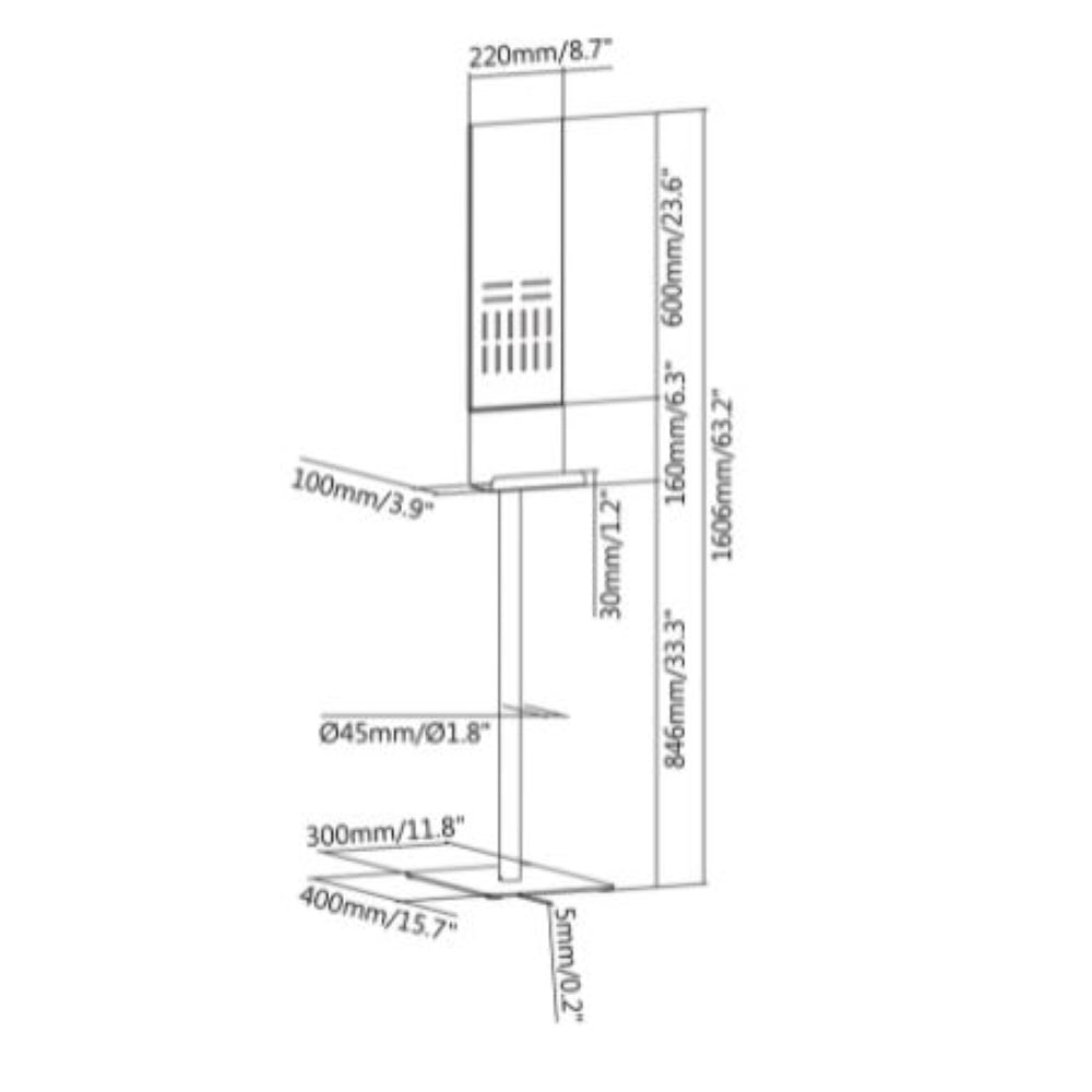 Mitat (LxSxK): 300 x 400 x 1606 mm