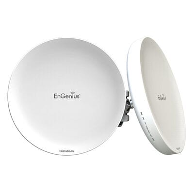 EnGenius EnStation6 on ulkokäyttöön tarkoitettu 5GHz WiFi-6 (11ax) tukiasema pitkille etäisyyksille. Suuren vahvistuksensa ansiosta se sopii täydellisesti jopa useiden kilometrien päähän ulottuviin point-to-point -asennuksiin.