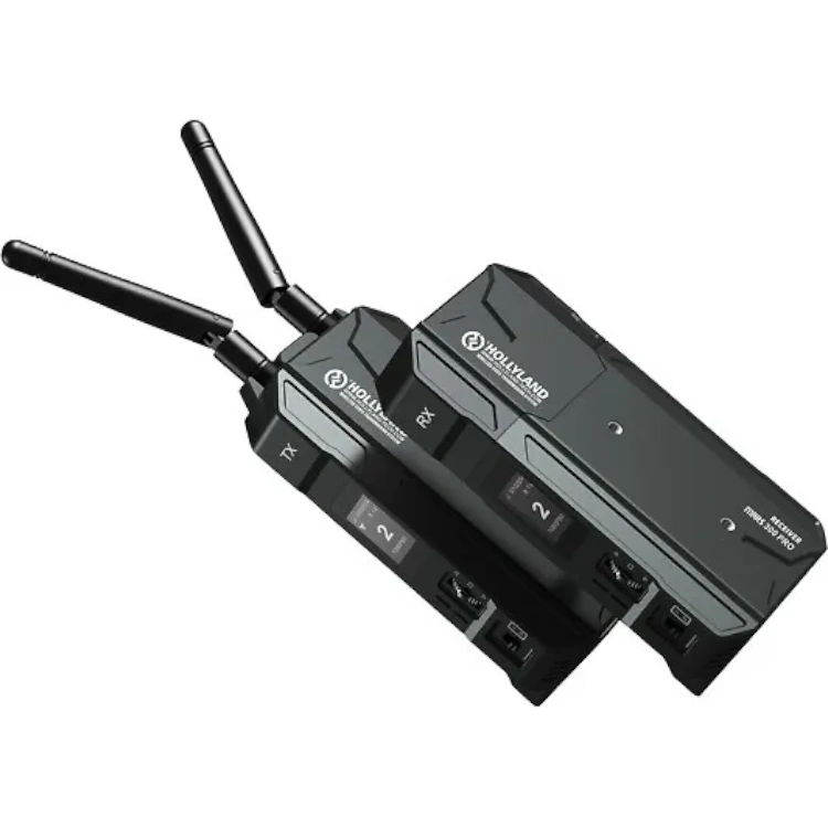 IOS:lle tai Androidille tehdyn Hollyview-sovelluksen avulla voit seurata videosi lähetystä reaaliajassa Wi-Fi-yhteyden kautta. Lähetin voi lähettää enintään yhdelle vastaanottimelle ja kahdelle sovellukselle tai yhteensä kolmelle sovellukselle samanaikaisesti. Lähetin ja vastaanotin ovat kooltaan pienikokoisia, niissä on kirkas OLED-näyttö asetuksia varten, ja niissä kussakin on 1/4″-20 -asennuskierre. Molemmat voivat saada virtaa USB Type-C -virtalähteestä tai käyttämällä erikseen saatavaa L-sarjan akkua niiden akkulevyjen avulla.