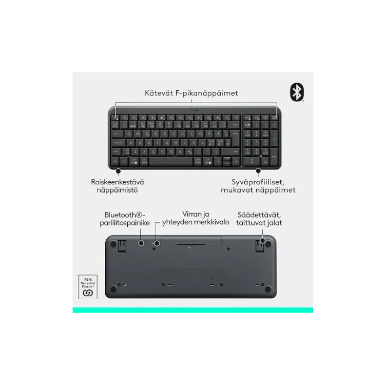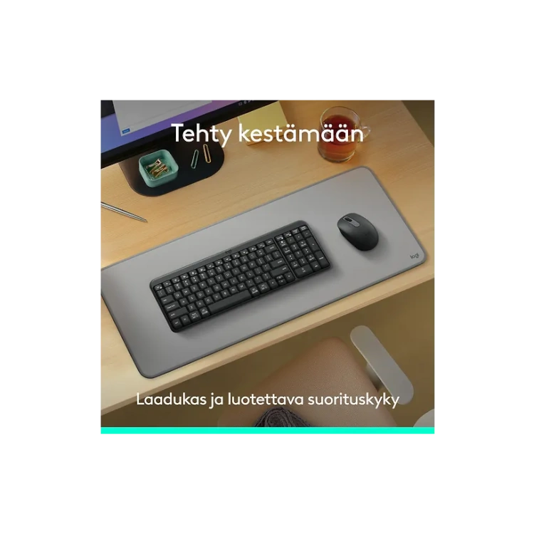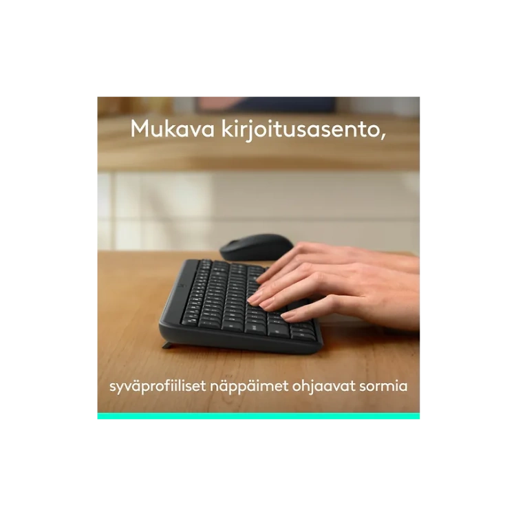 Logitech MK250 -näppäimistö ja hiiri muodostavat langattoman Bluetooth-yhdistelmän, joka on suunniteltu helpottamaan päivittäisiä tietokoneen käyttötarpeita. Yhteys syntyy nopeasti ilman erillistä sovitinta tai USB-porttia, mikä tekee asennuksesta vaivatonta. Kompakti hiiri ja tiivis, mutta toimiva näppäimistö sopivat hyvin niin työpöydälle kuin liikkuvaan käyttöön.