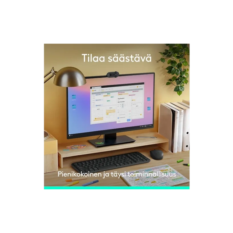 Näppäimistön matalat näppäimet ja säädettävä kallistusjalka tarjoavat mukavan kirjoituskokemuksen. Tiiviissä asettelussa on huomioitu myös numeronäppäimistö ja nuolinäppäimet, jotka tukevat tehokasta työskentelyä.