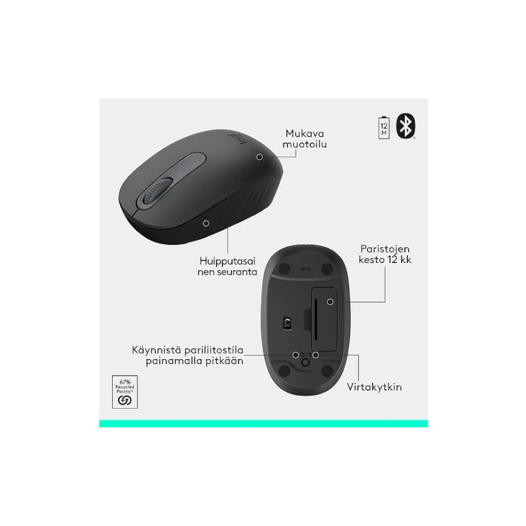 Pienikokoinen Bluetooth-hiiri on helppo ottaa mukaan laukkuun. Sen molempikätinen muotoilu tukee luonnollista käden asentoa, mikä vähentää rasitusta pitkissä käyttösessioissa. Optinen sensori takaa tarkan ohjauksen eri pinnoilla.