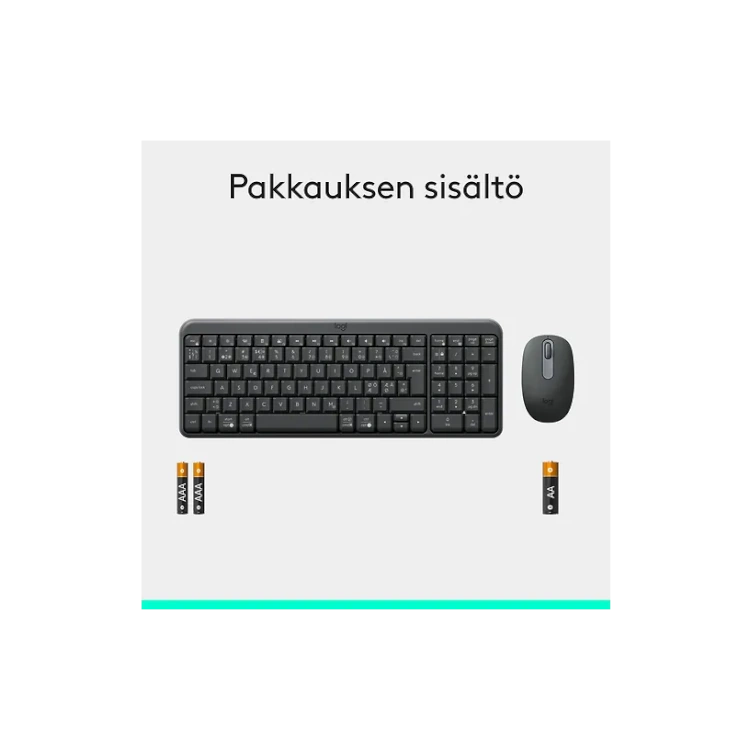 • Paristot: näppäimistö toimii kahdella AAA-paristolla, hiiri yhdellä AA-paristolla