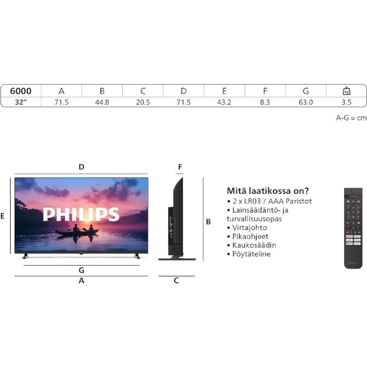 Philips 32″ PFS6000 Full HD LED TV • LED-paneelitekniikka • Titan OS 2025 -käyttöjärjestelmä • 60 Hz paneeli, Full HD • Pixel Plus HD • Raamiton ohut suunnittelu • Takuu 24kk