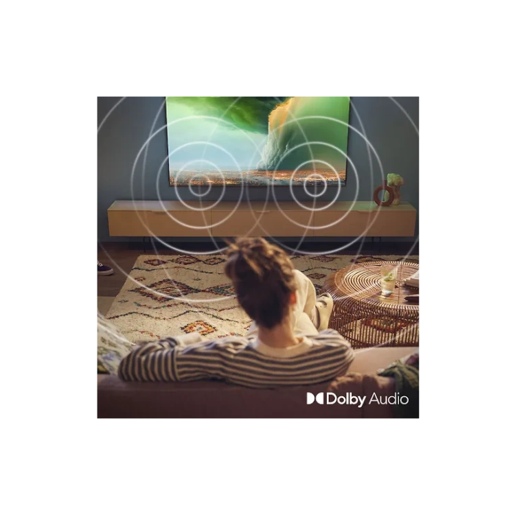 Dolby Audio -teknologia takaa kristallinkirkkaan äänen kaikissa tilanteissa, olipa kyseessä dialogi, tanssikohtaukset, toimintaelokuvat tai luontohetket. Äänen tehostuksen ansiosta voit säätää puheäänen voimakkuutta ilman, että taustaäänen voimakkuus muuttuu, mikä tekee jokaisesta lauseesta selkeämmän. Matter Smart Home -yhteensopivuus mahdollistaa television ohjaamisen äänellä Alexa-laitteiden tai Google-älykaiuttimien avulla.