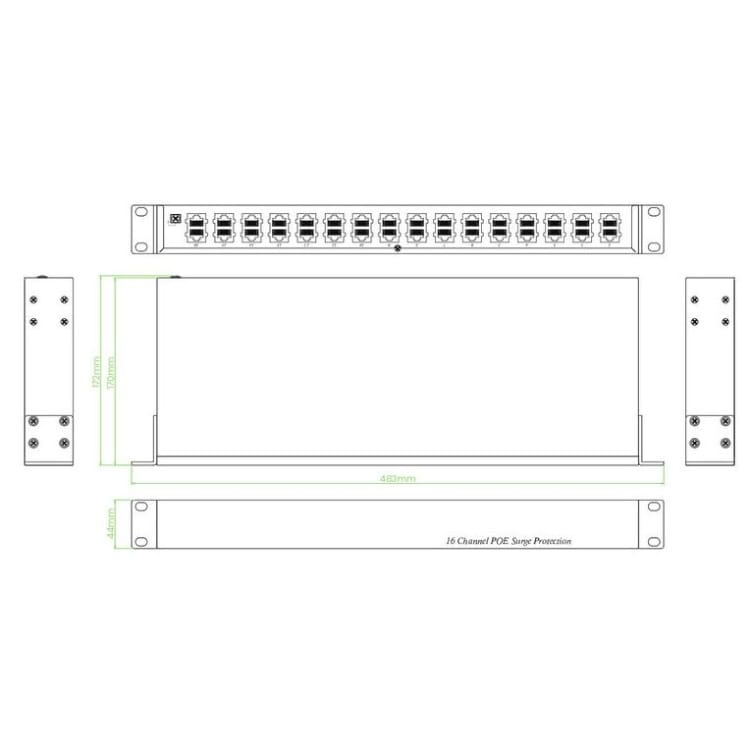 SP016P on ylijännitesuoja, jossa on 16 RJ45-tuloa ja 16 RJ45-lähtöä. Se voidaan liittää siis useisiin PoE-laitteisiin suojaamaan niitä suurjännitepiikeiltä, kuten salamaniskuilta.