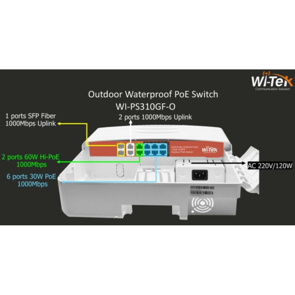 Wi-Tek 10-porttinen PoE kytkin 120W ulkokäyttöön