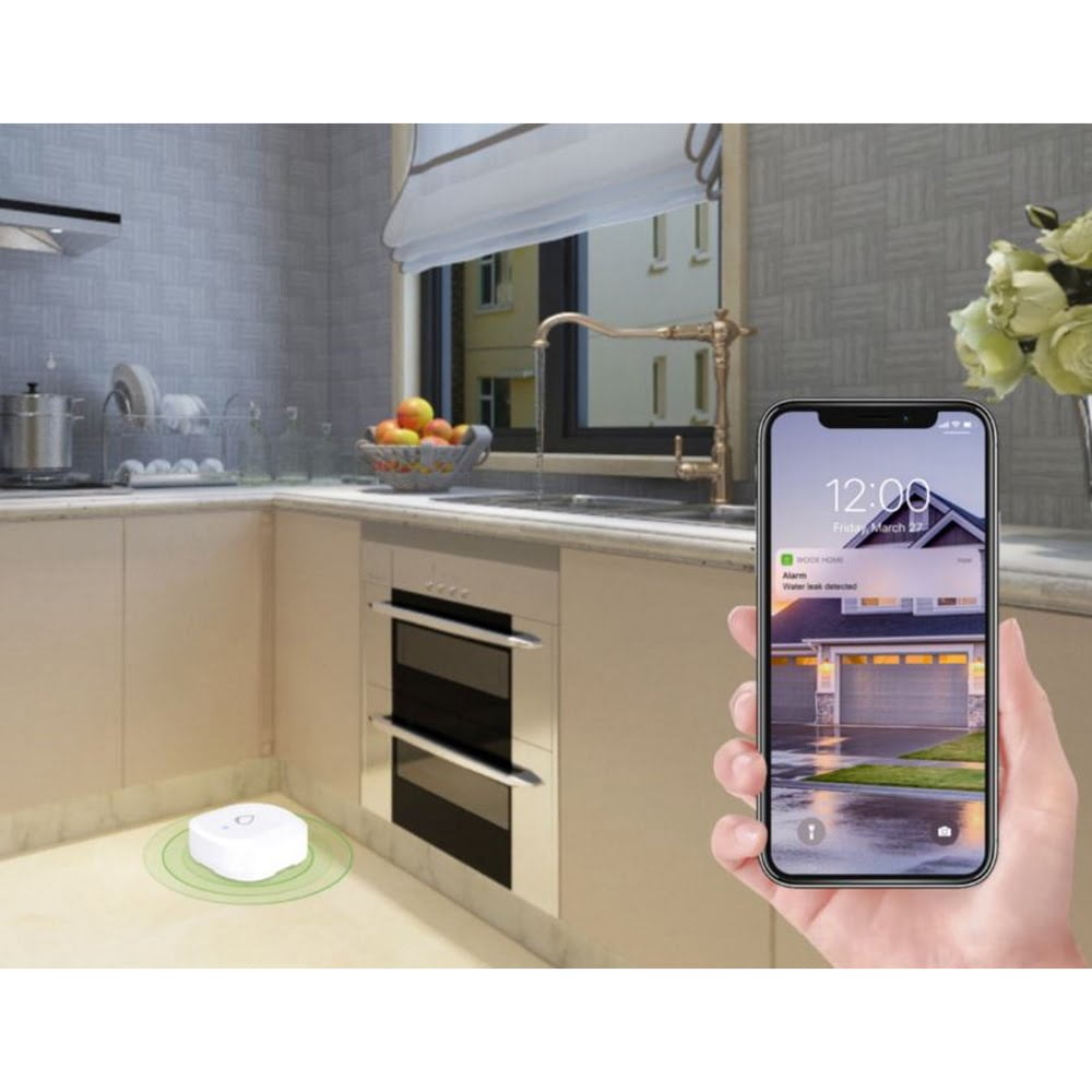 WOOX R7050, älykäs vesivuototunnistin on pieni ja luotettava kodin vakooja, joka ilmoittaa, jos nestettä tippuu tai valuu pois paikasta, johon tunnistin on sijoitettu. Vesivuototunnistimen käyttöä varten tarvitset myös R7070 Zigbee-ohjainyksikön. R7050 vesivuototunnistin on helppo linkittää ohjainyksikköön, jolloin se on myös yhdistettävissä samassa verkossa toimiviin muihin WOOX älylaitteisiin.